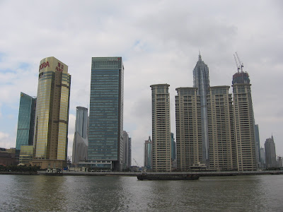 Arrivée à Shanghai et promenade en bateau sur la rivière Huangpu. Des 2 côtés de la rivière, des immeubles et au niveau du Bund, des batîments plus anciens de type européen. L'essentiel de la ville se situe à l'ouest de cette rivière. A l'est (Pudong New Aera) , le centre financier et de nombreux immeubles déjà construit ou en construction.